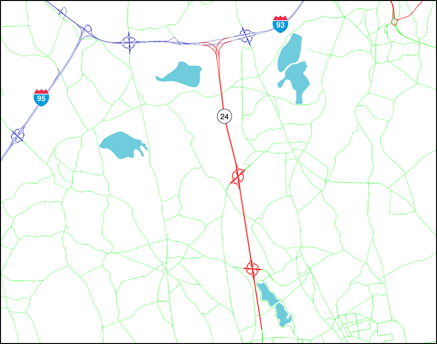 This section of Route 24 is proposed as a CUFC; it includes mileage in Randolph, Stoughton, and Avon as far as Brockton in the Old Colony planning region.