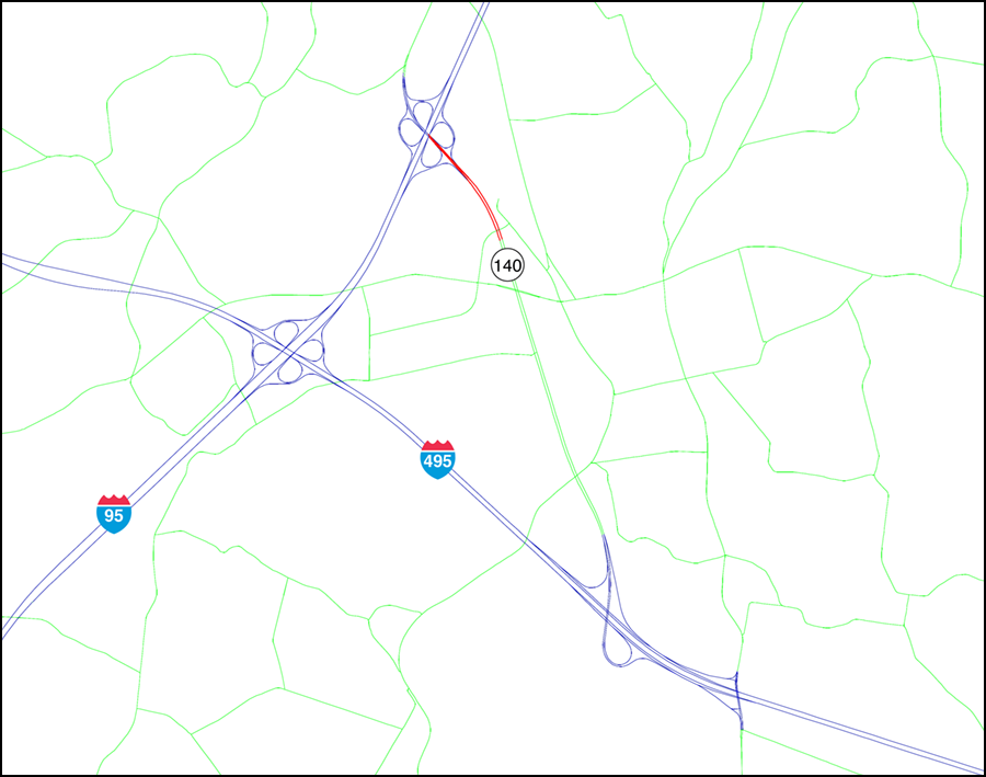 This area is connected to the two interstate highways by Route 140. The portion of Route 140 south of I-95 in Foxborough is proposed as a CUFC.