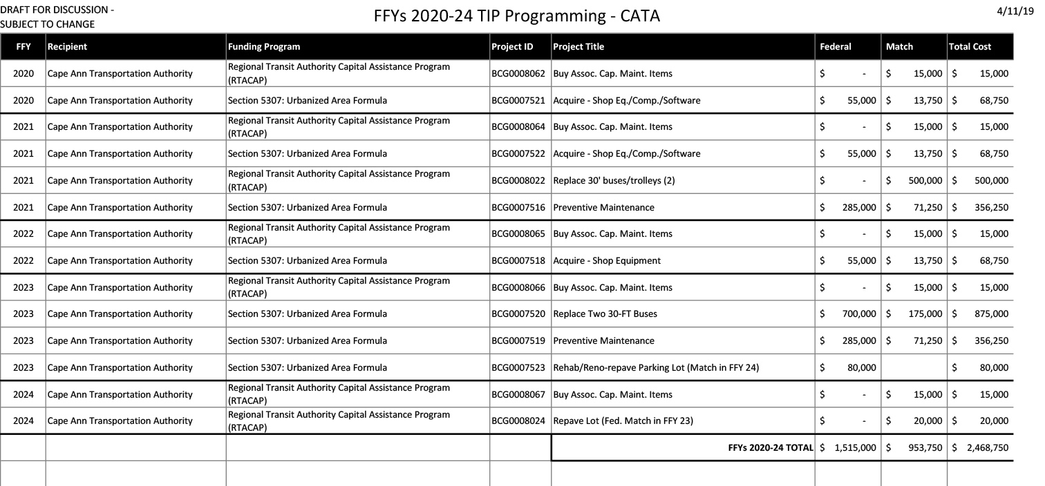 3-4: Federal Fiscal Years 2020-24 Transportation Improvement Program MPO Transit List - CATA