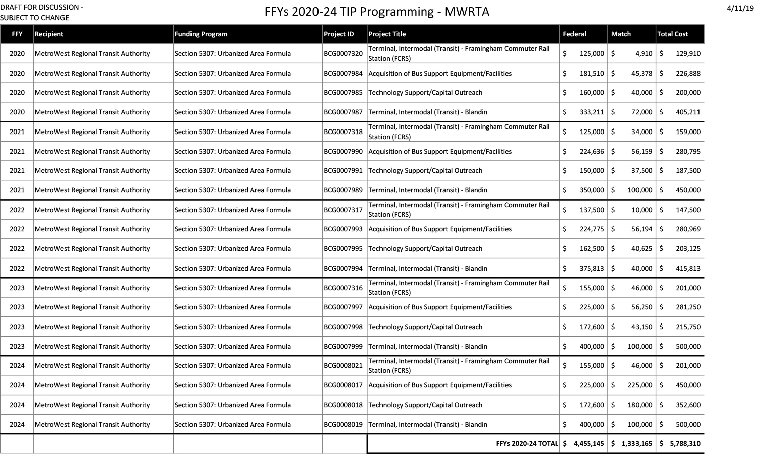 3-5: Federal Fiscal Years 2020-24 Transportation Improvement Program MPO Transit List - MWRTA