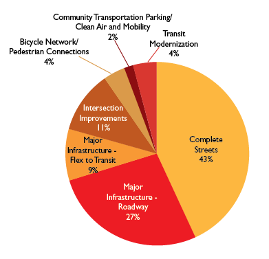 The table does not include the Community Transportation/Parking/Clean Air and Mobility investment program and funds flexed to transit modernization because specific projects have not yet been identified.