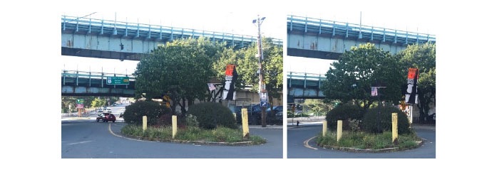 Northeast Corner of Intersection: Pedestrian Refuge Island