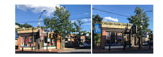 Southeast Corner of Intersection: Chelsea Floor Covering Company