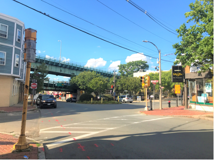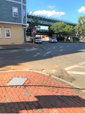 The location in Chelsea was selected because the intersection at Everett Avenue and Chestnut Street is located within Highway Safety Improvement Program (HSIP) crash clusters for both bicyclists and pedestrians.1 The intersection is also located within a traffic analysis zone (TAZ) that exceeds the regional thresholds for minority and low-income populations.2