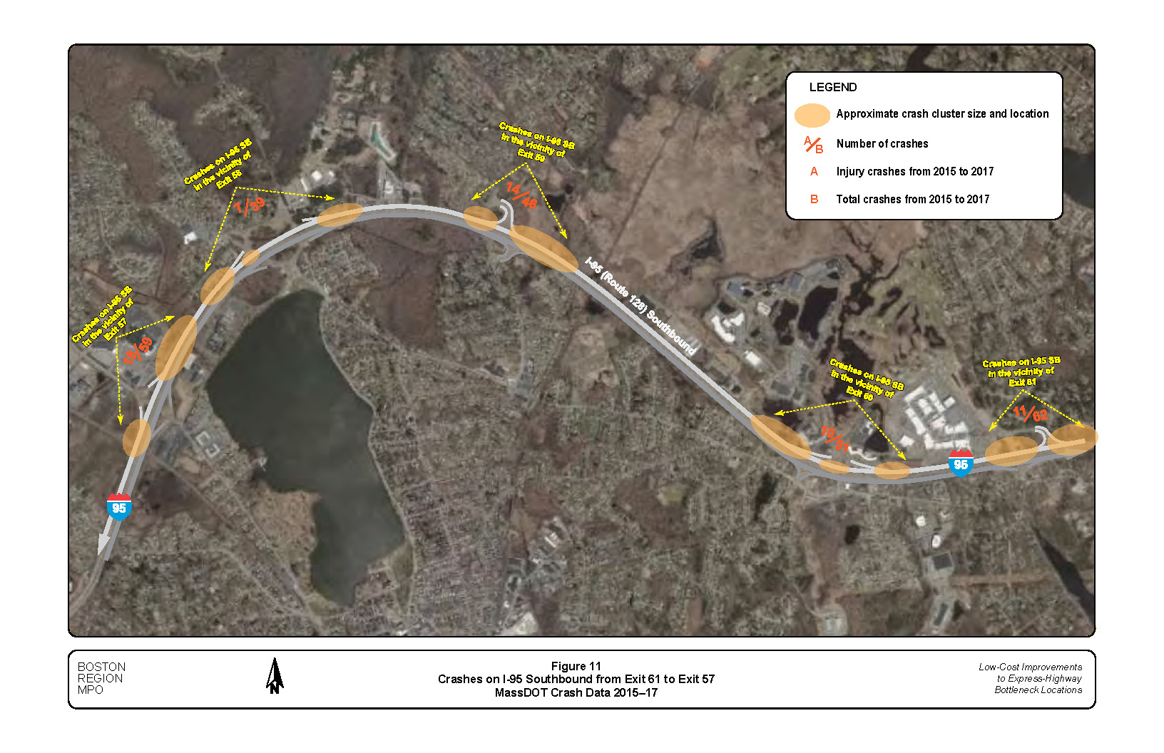 Crashes on I-95 Southbound from Exit 61 to Exit 57: MassDOT Crash Data 2015–17