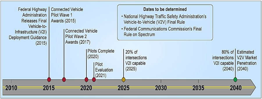 Source: GAO. (2015). Intelligent Transportation Systems: Vehicle-to-Infrastructure Technologies Expected to Offer Benefits, but Deployment Challenges Exist. Washington DC: Government Accountability Office. doi:GAO-15-775.