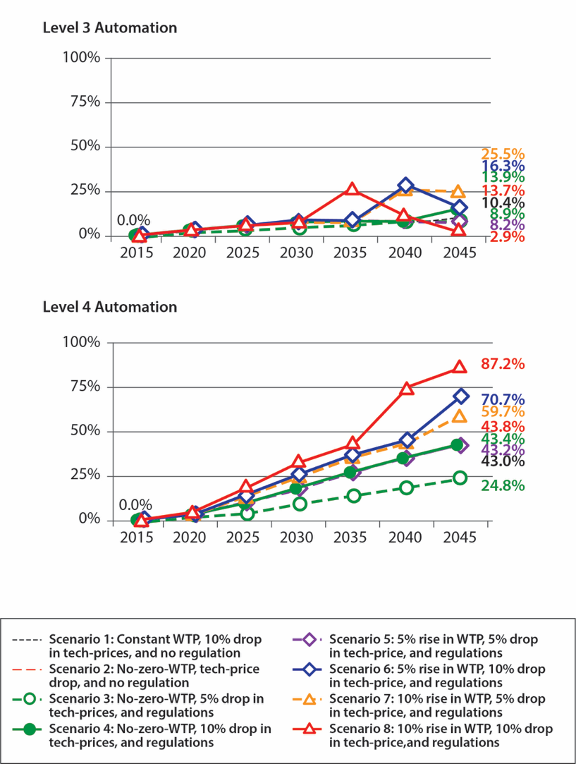Figure 2 Estimated Shares of US Light Duty Vehicles with Advanced  Automation under Varying Future Conditions